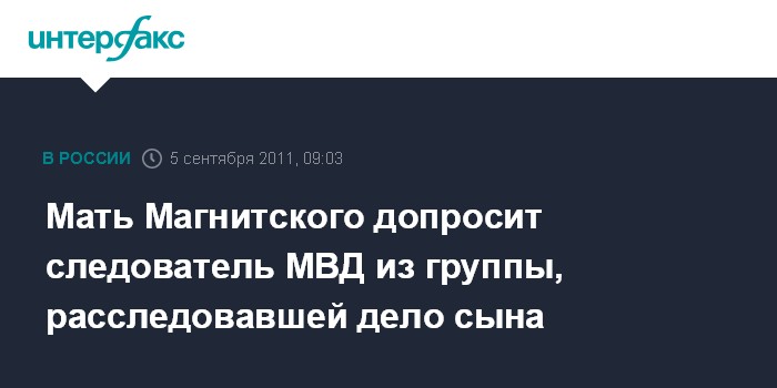 Москва. 5 сентября. INTERFAX.RU - Мать юриста фонда Hermitage Capital Сергея Магнитского, умершего в московском изоляторе, вызывают на допрос, заявили в Фонде.