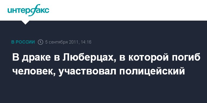 Москва. 5 сентября. INTERFAX.RU - Столичный полицейский принимал участие в массовой драке в подмосковном городе Люберцы, в результате которой от огнестрельного ранения погиб 23-летний молодой человек, сообщили в СК РФ.