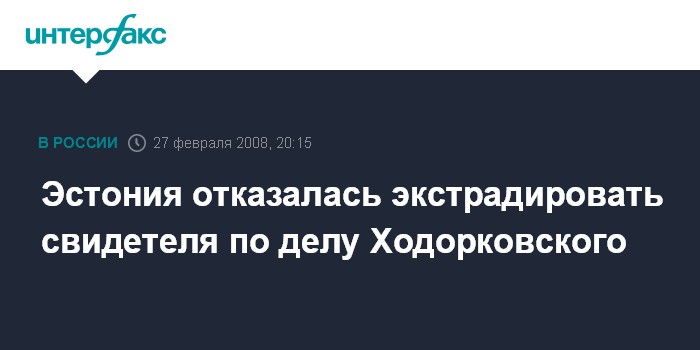 Таллин. 27 февраля. INTERFAX.RU - Эстонский суд постановил отказать России в выдаче свидетеля по уголовному делу бывшего главы нефтяной компании "ЮКОС" Михаила Ходорковского гражданина РФ Павла Забелина.