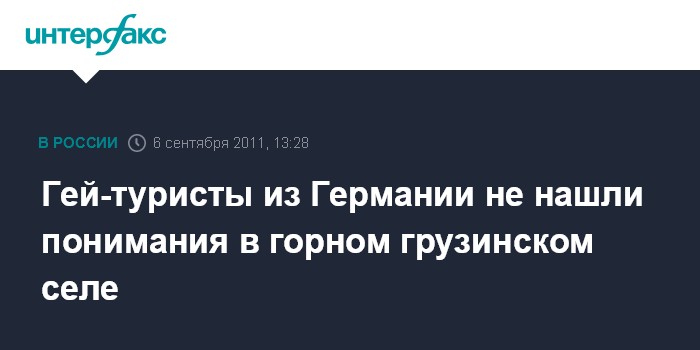 Тбилиси. 6 сентября. INTERFAX.RU - В горном грузинском селе Омало, граничащим с Чечней, были избиты и сброшены в реку трое германских туристов, оказавшимися геями.