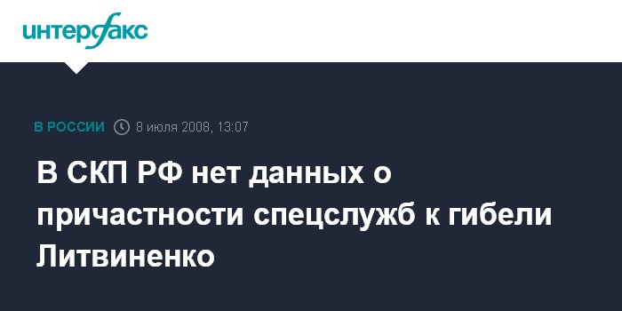 Москва. 8 июля. INTERFAX.RU - В Следственном комитете при прокуратуре (СКП) РФ заявляют, что не располагают данными о причастности каких-либо спецслужб к отравлению бывшего сотрудника ФСБ Александра Литвиненко. "Несмотря на то, что поручения российской стороны об оказании правовой помощи британскими властями в полном объеме не исполнены, следствие по этому делу значительно продвинулось в расследовании и не располагает информацией, что к преступлению причастна какая-либо спецслужба", - заявил "Интерфаксу" во официальный представитель СКП РФ Владимир Маркин.