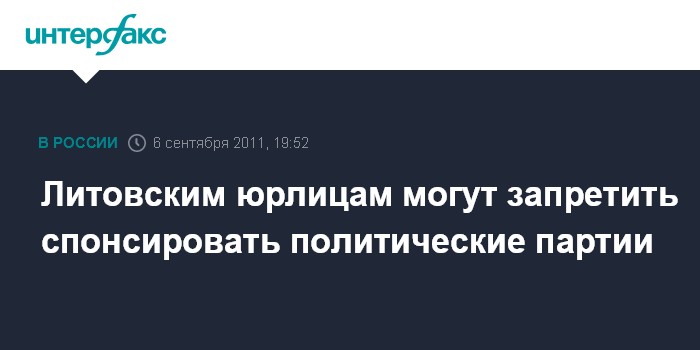 Вильнюс. 6 сентября. INTERFAX.RU - Литовский президент Даля Грибаускайте предлагает запретить предприятиям спонсировать политические партии, уменьшить максимальную сумму спонсорских пожертвований физических лиц и упростить порядок принятия партиями небольших пожертвований.