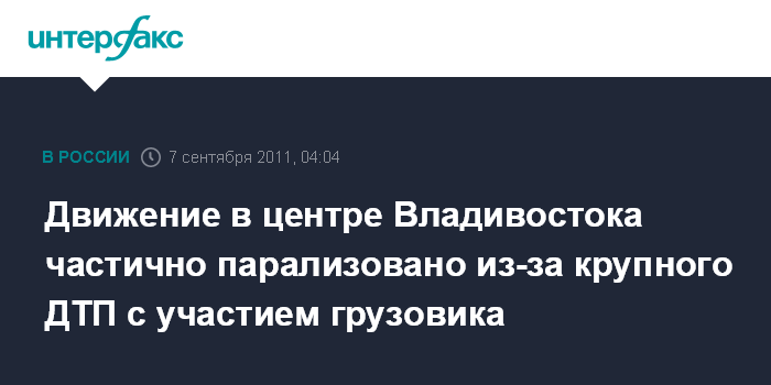 Владивосток. 7 сентября. ИНТЕРФАКС-ДАЛЬНИЙ ВОСТОК - Тысячи жителей одного из крупных районов Владивостока в среду утром вынуждены добираться до работы пешком из-за крупной аварии с участием грузовика, который перевернулся и перекрыл одну из основных магистралей города.