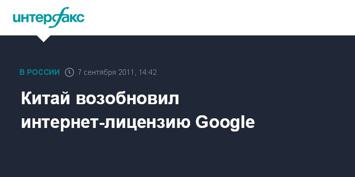 Маунтин-Вью. 7 сентября. INTERFAX.RU - Китайские власти возобновили лицензию компании Google Inc., оператора самого популярного поисковика в мире, на предоставление интернет-услуг (ICP) на территории страны в ограниченном объеме сроком на один год, говорится в сообщении Google.