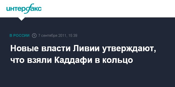 Представитель военного командования Триполи Анис Шариф заявил, что его бойцы оцепили район радиусом в примерно 64 километра. По его данным, именно там находится Каддафи. Шариф уверен, что теперь поимка или ликвидация бывшего руководителя страны - лишь вопрос времени.