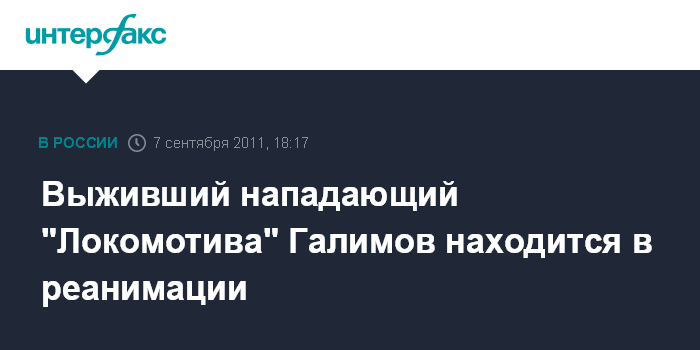 Ярославль. 7 сентября. ИНТЕРФАКС-ЦЕНТР - В авиакатастрофе Як-42 в Ярославле выжил нападающий "Локомотива" Александр Галимов.
