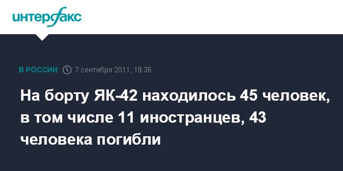 На борту ЯК-42 находилось 45 человек, в том числе 11 иностранцев, 43 человека погибли