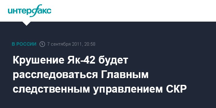Крушение Як-42 будет расследоваться Главным следственным управлением СКР
