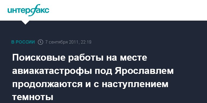 Поисковые работы на месте авиакатастрофы под Ярославлем продолжаются и с наступлением темноты