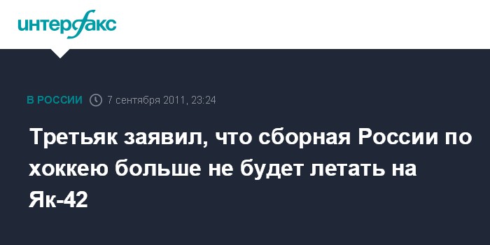 Третьяк заявил, что сборная России по хоккею больше не будет летать на Як-42