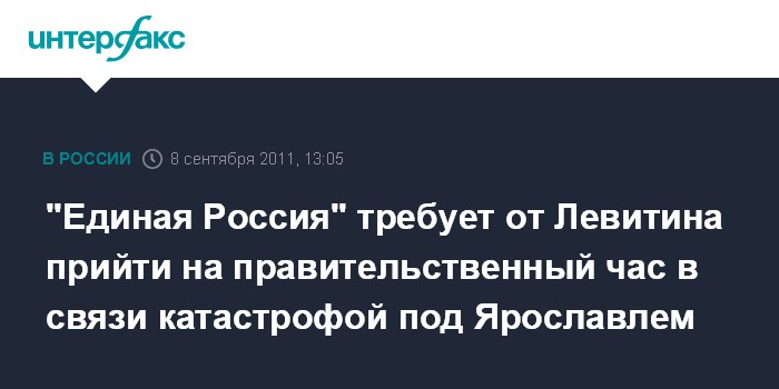 "Единая Россия" требует от Левитина прийти на правительственный час в связи катастрофой под Ярославлем