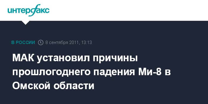 Новосибирск. 8 сентября. INTERFAX.RU - Комиссия Межгосударственного авиационного комитета обнародовала результаты расследования катастрофы вертолета Ми-8 в Омской области, в которой в ноябре прошлого года погибли 8 пассажиров.