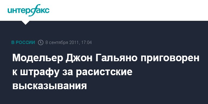 Париж. 8 сентября. INTERFAX.RU - Суд в Париже наложил штраф в размере 6 тыс. евро на бывшего арт-директора дома Christian Dior Джона Гальяно, сообщает агентство EFE.