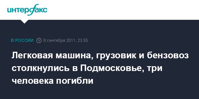 Москва. 8 августа. ИНТЕРФАКС - Три человека погибли и один пострадал в результате ДТП в Московской области, сообщил "Интерфаксу" источник в правоохранительных органах.