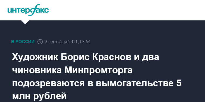 Художник Борис Краснов и два чиновника Минпромторга подозреваются в вымогательстве 5 млн рублей