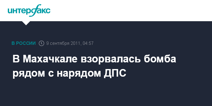 Махачкала. 9 сентября. ИНТЕРФАКС-ЮГ - В Махачкале, недалеко от дислокации наряда ДПС, сработало взрывное устройство, жертв и пострадавших нет, сообщил агентству "Интерфакс-Юг" источник в МВД республики.