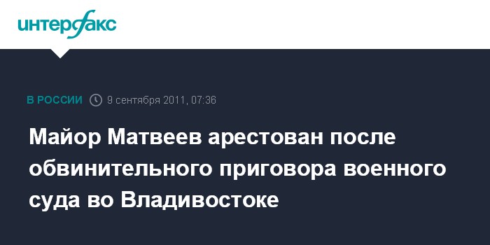 Майор Матвеев арестован после обвинительного приговора военного суда во Владивостоке