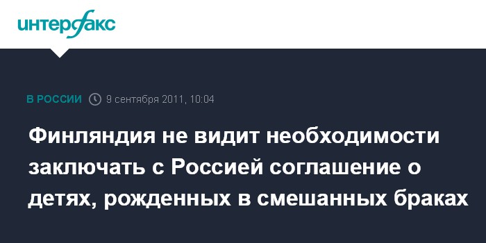 Финляндия не видит необходимости заключать с Россией соглашение о детях, рожденных в смешанных браках