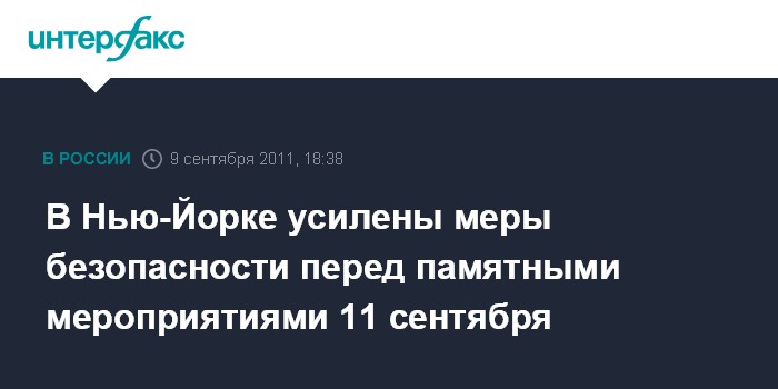 Вашингтон. 9 сентября. INTERFAX.RU - Власти Нью-Йорка усиливают меры безопасности в связи с сообщениями о готовящихся терактах, приуроченных к памятным мероприятиям событий 11 сентября, сообщает в пятницу агентство Bloomberg.