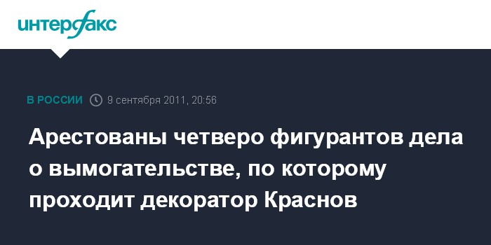 Арестованы четверо фигурантов дела о вымогательстве, по которому проходит декоратор Краснов