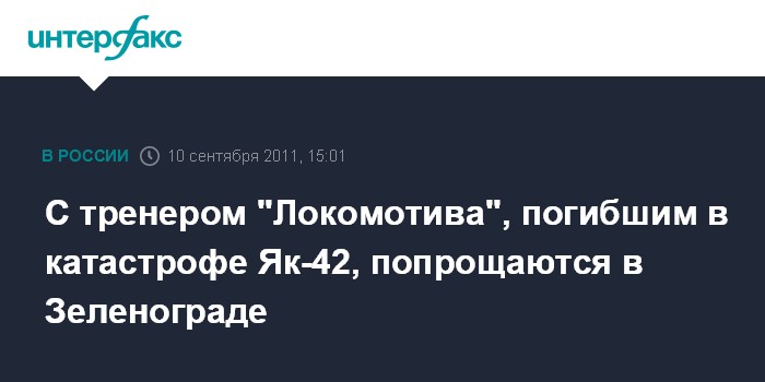 С тренером "Локомотива", погибшим в катастрофе Як-42, попрощаются в Зеленограде