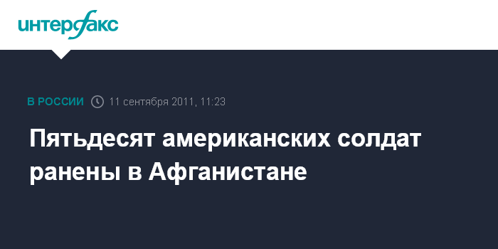 Лондон. 11 сентября. INTERFAX.RU - В Афганистане в результате нападения смертника на боевой пост НАТО ранены 50 американских солдат, сообщает в воскресенье Би-би-си. Согласно заявлению пресс-секретаря армии США майора Дэвида Истберна, солдаты оказались в числе 89 человек, пострадавших 10 сентября от взрыва в провинции Вардак, находящейся в центральном Афганистане. Ответственность за теракт взяли на себя представители движения Талибан.