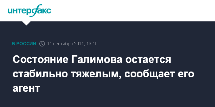 Состояние Галимова остается стабильно тяжелым, сообщает его агент
