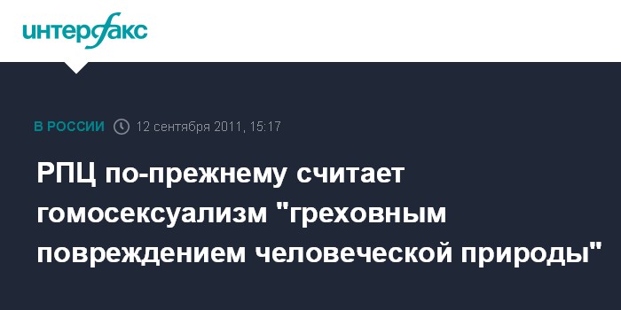 РПЦ по-прежнему считает гомосексуализм "греховным повреждением человеческой природы"
