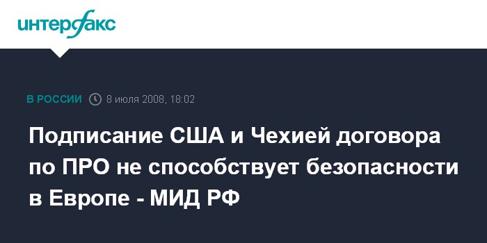 Подписание США и Чехией договора по ПРО не способствует безопасности в Европе - МИД РФ