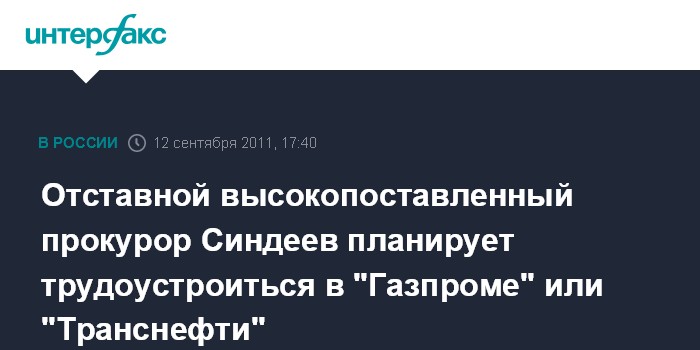 Отставной высокопоставленный прокурор Синдеев планирует трудоустроиться в "Газпроме" или "Транснефти"