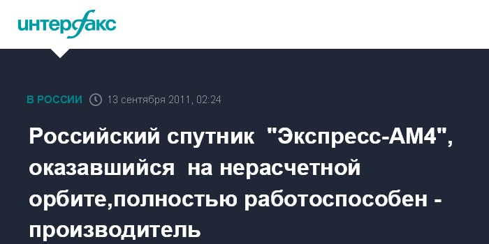 построило спутник, что "Экспресс-АМ4" невозможно перевести на рабочую