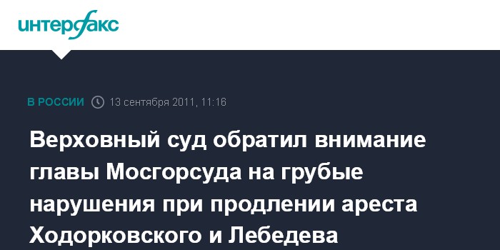 Верховный суд обратил внимание главы Мосгорсуда на грубые нарушения при продлении ареста Ходорковского и Лебедева