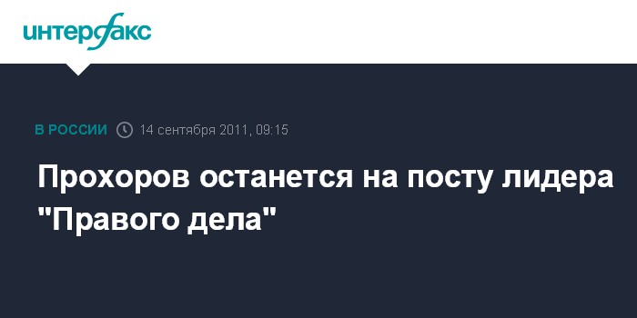 Москва. 14 сентября. INTERFAX.RU - Лидера "Правого дела" Михаила Прохорова не будут сегодня смещать с поста лидера партии на предвыборном съезде.