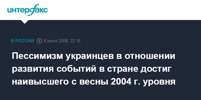 В сообщении службы отмечается, что эти показатели являются наиболее пессимистичными, которые наблюдались с апреля 2004 года. В начале 2008 года был непродолжительный рост социального оптимизма (доля тех, что считал, что события развиваются в правильном направлении, увеличилась в феврале 2008 г. до 31%), однако уже в марте произошло снижение этого показателя, которое продолжилось в последующие месяцы.