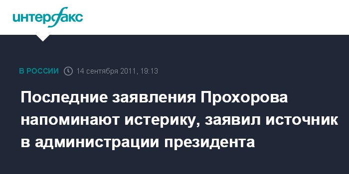Последние заявления Прохорова напоминают истерику, заявил источник в администрации президента