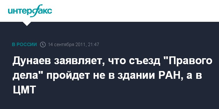 Дунаев заявляет, что съезд "Правого дела" пройдет не в здании РАН, а в ЦМТ
