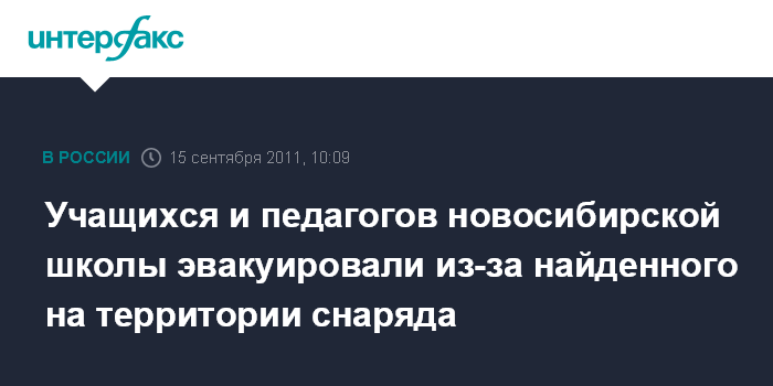 Новосибирск. 15 сентября. INTERFAX.RU - Рабочие обнаружили боевой снаряд при проведении земляных работ на территории школы N206 в Октябрьском районе Новосибирска накануне вечером.