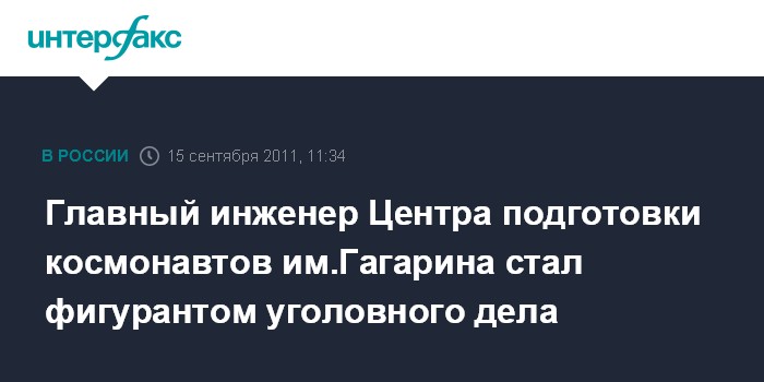 Главный инженер Центра подготовки космонавтов им.Гагарина стал фигурантом уголовного дела