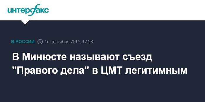 Москва. 15 сентября. INTERFAX.RU - Представитель Минюста на съезде партии "Правого дела" в Центре международной торговли, где собрались противники Михаила Прохорова, считает съезд легитимным.