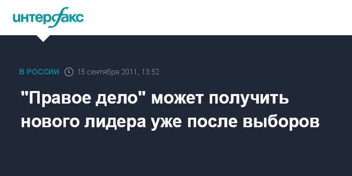 Москва. 15 сентября. INTERFAX.RU - В партии "Правое дело" после отставки Михаила Прохорова не исключают, что выборы нового лидера могут затянуться.