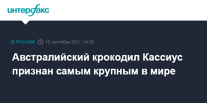 Сидней. 15 сентября. INTERFAX.RU - Крокодил из Австралии по кличке Кассиус попал в книгу рекордов Гиннеса как самая крупная рептилия в мире, обитающая в неволе, сообщает агентство ЭФЭ.