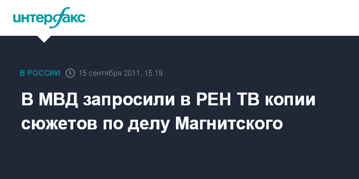 В МВД запросили в РЕН ТВ копии сюжетов по делу Магнитского