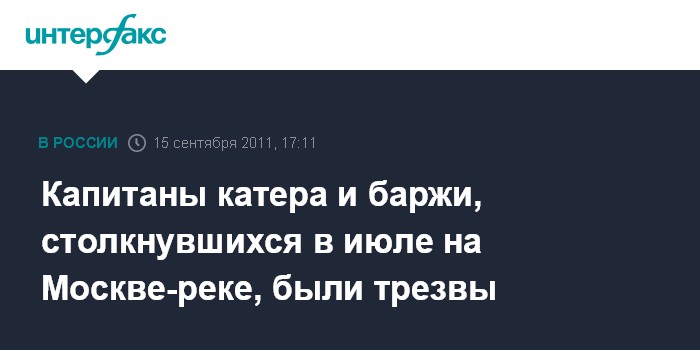 Капитаны катера и баржи, столкнувшихся в июле на Москве-реке, были трезвы
