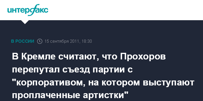 В Кремле считают, что Прохоров перепутал съезд партии с "корпоративом, на котором выступают проплаченные артистки"