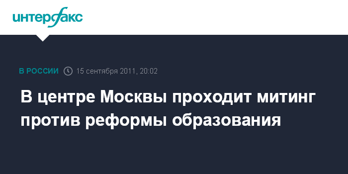 Москва. 15 сентября. INTERFAX.RU - Порядка трехсот человек участвуют в акции протеста против реформы образования на Пушкинской площади в центре Москвы.
