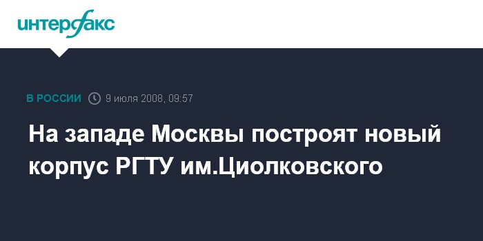 На западе Москвы построят новый корпус РГТУ им.Циолковского