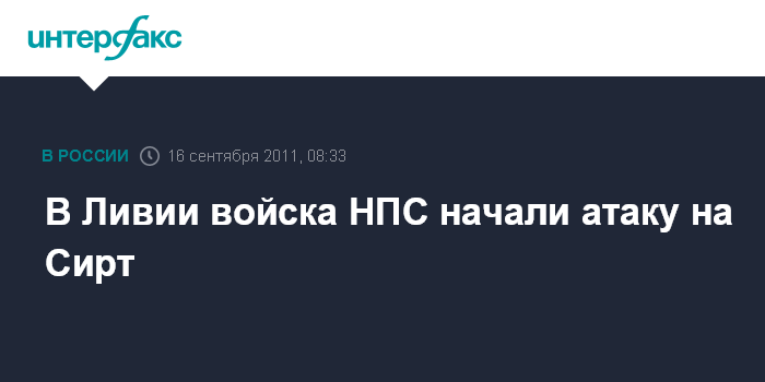 Лондон. 16 сентября. INTERFAX.RU - Войска Национального переходного совета (НПС) Ливии столкнулись с жестким сопротивлением во время атаки на родной город Муамара Каддафи Сирт, сообщает BBC.