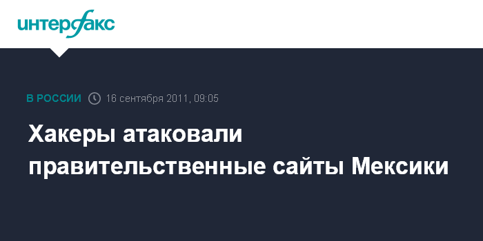 Москва. 16 сентября. INTERFAX.RU - Хакеры из группировки Anonymous взяли на себя ответственность за кибератаку на сайты нескольких министерств Мексики, сообщает ВВС.