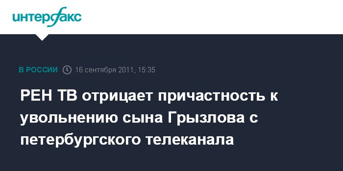 Москва. 16 сентября. INTERFAX.RU - Руководство телеканала РЕН ТВ не имеет отношения к увольнению сына председателя Госдумы Бориса Грызлова Дмитрия с петербургского телеканала, поскольку он не входит в одноименный медиахолдинг.
