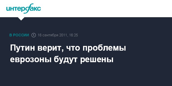 Сочи. 16 сентября. INTERFAX.RU - Премьер-министр РФ Владимир Путин заявил, что не сомневается в способности ЕС стабилизировать ситуацию в еврозоне.